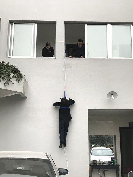 圖為高處逃生演練現(xiàn)場 理論培訓結(jié)束后,溫嶺西收費所隨即開展實地逃生演練,讓員工學習使用逃生繩從高處逃生的技能。在蔡教官的指導下,一名收費員大膽地自我推薦,主動嘗試此自救方法。 一切準備就緒,該收費員迅速爬上窗戶,利用逃生繩小心地沿著墻壁下滑,并順利落地。教官最后根據(jù)演練情況作點評。 此項技能有助于在火災(zāi)時多開辟一條逃生通道,減少人員傷亡。 通過此次全面的培訓演練,溫嶺西收費所將全力共抓消防安全工作,排除各類隱患。 鄭霞霞