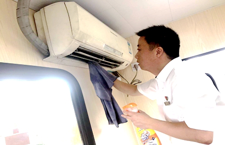 黨員帶頭做表率之清洗空調(diào) |
