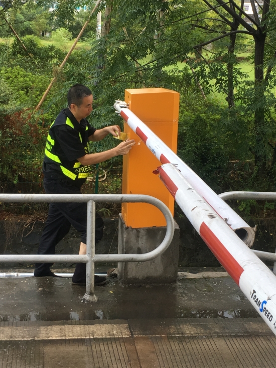 增強(qiáng)機(jī)電設(shè)備防水措施。集團(tuán)收費(fèi)站有很多機(jī)電設(shè)備直接安裝在戶外,因外層有開關(guān)柜保護(hù),一般雨水是無法滲透的??梢坏┯錾吓_(tái)風(fēng)雨等惡劣天氣就很難確保內(nèi)部設(shè)備不會(huì)被打濕,尤其是計(jì)量柜里面的計(jì)重設(shè)備,一旦短路損壞會(huì)立即造成車輛擁堵。因此,剛完成高桿燈下降工作的中心隊(duì)員顧不上休息,又馬不停蹄趕赴收費(fèi)所將計(jì)量柜、欄桿機(jī)等重要設(shè)備用封帶紙進(jìn)行密封處理,不漏過任何一處可能進(jìn)水的地方,大大增強(qiáng)了這些設(shè)備防水性能。