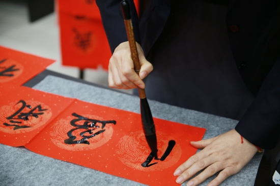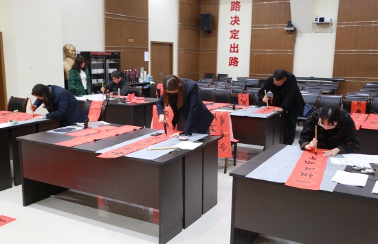 圖為學(xué)員學(xué)習(xí)寫書法 本次活動(dòng)由集團(tuán)辦公室牽頭組織,以集中書寫和分開書寫相結(jié)合的方式進(jìn)行。參與者在百忙之中抽出自己的業(yè)余時(shí)間,積極參與到活動(dòng)中來,共同書寫500多幅春聯(lián)作品。春節(jié)臨近,集團(tuán)全體員工和集團(tuán)兩個(gè)結(jié)對(duì)村的100戶村民都將收到暖暖的“送春聯(lián)”祝福。 當(dāng)日集中書寫現(xiàn)場(chǎng),參與者們認(rèn)真埋頭書寫,并不時(shí)地相互請(qǐng)教學(xué)習(xí)。有的下筆蒼勁有力、筆精墨妙,有的如行云流水一筆而下,有的力透紙背,一個(gè)個(gè)大字很快躍然紙上。