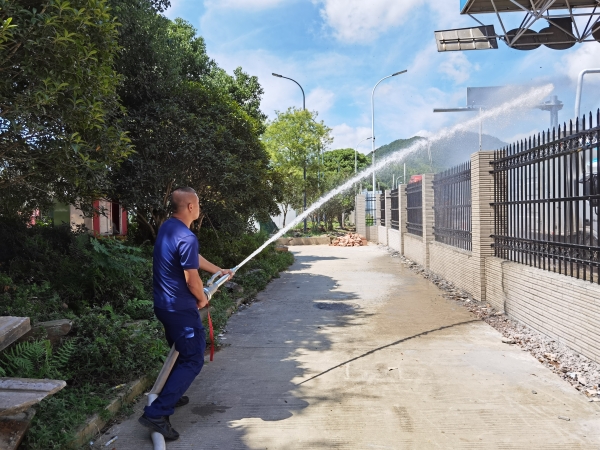 可是,蜜蜂不除去,車道無(wú)法安全通行,所里電話求助消防官兵。消防官兵采用高壓水槍沖洗被蜜蜂占領(lǐng)的區(qū)域,行政人員便配合他們?cè)俅?/span>利用殺蟲劑噴殺四處飛舞的蜜蜂,尤其是它們的“老巢”。前后經(jīng)過(guò)半小時(shí)的努力,數(shù)千只蜜蜂終于被成功驅(qū)散,被侵占的車道重新開啟。