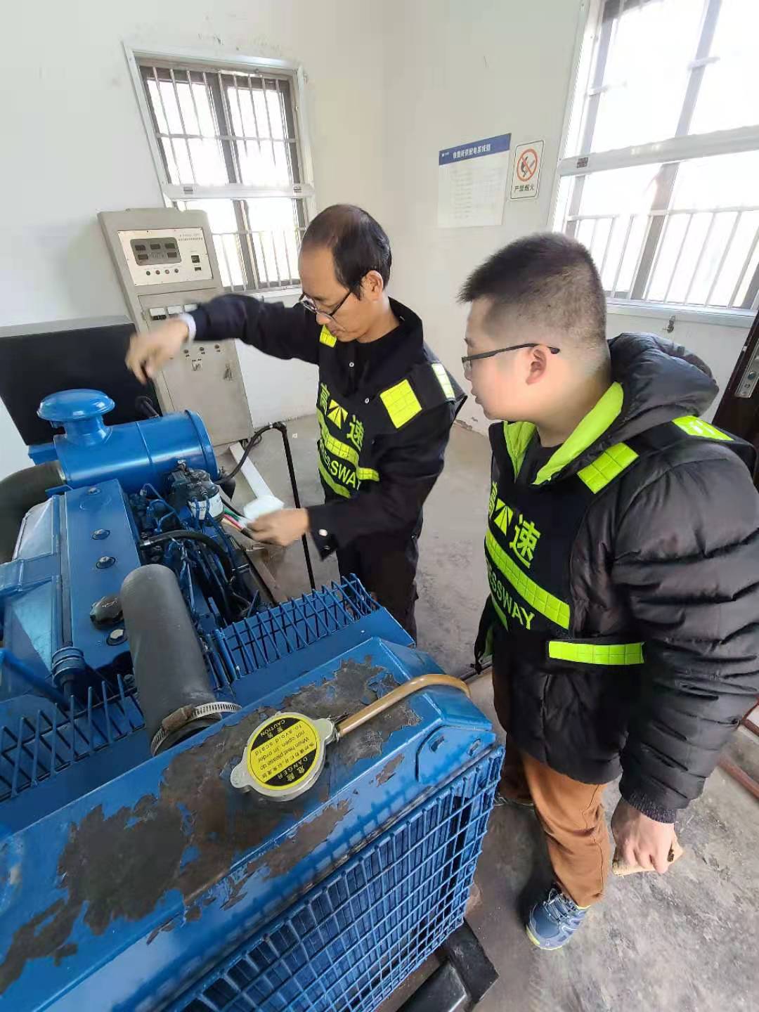 (圖為工作人員在對(duì)發(fā)電機(jī)巡檢)