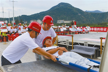 7月5日,在市內環(huán)路(黃巖段)7+120-10+170工程施工現(xiàn)場,救援人員將“高處墜落”工人抬向救護車輛。當日,內環(huán)路(黃巖段)舉行了應急救援演練活動,演練以分組競賽的形式舉行。施工單位、監(jiān)理單位及臺州高速市政建設投資有限公司員工等近200人參加了演練。 http://paper.taizhou.com.cn/tzrb/html/2017-07/07/content_818958.htmfrom=singlemessage&isappinstalled=0